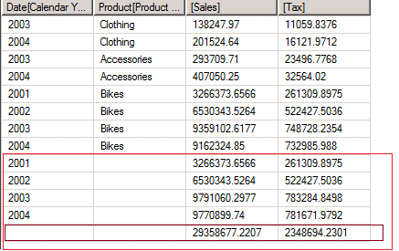 ROLLUP (‘Date'[Calendar Year],Product[Product Category Name]),
