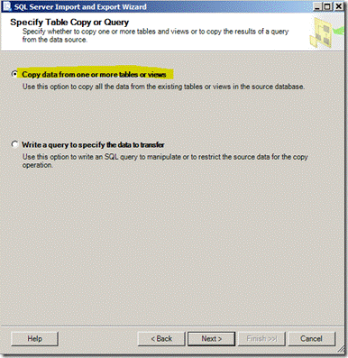 So you have an option of Writing a query or select a table – I haven’t explored option of writing Query, so selected Select Table