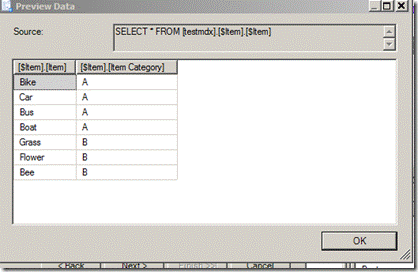 As you have seen earlier in Item Dimension, I have only two columns but if you check DSV in a SSAS Database you will find three columns – oops which means, I lost one column – yes you are right.