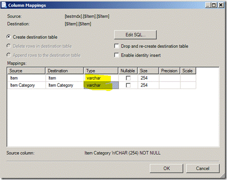 Some warnings – related to truncate of data, I stated Type as Varchar and Size 254 – so it’s just informing that I can import only that much data in a column,
