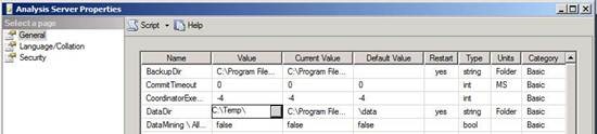 3. On the general tab, change the value of the DataDir property to a different folder (it doesn’t matter what)