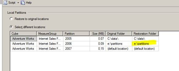 Yes we can use the database backup and during restore change the drive location for specific Partition but if the Partition file size >4gb and AS is 2005, then you will be in trouble J because there is a limitation that a specific file shouldn’t be >4GB (yes fixed in SQL 2008) J