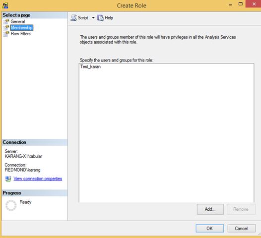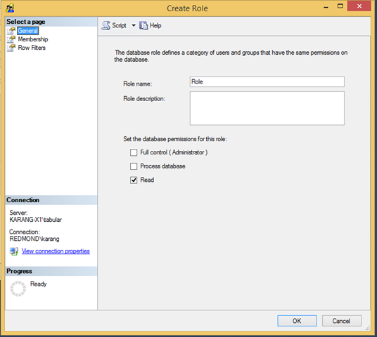 In MOLAP when you had Read Permission you were able to see those Databases in Management Studio but in Tabular Instance you cant see any more its by deign, in this post I have tried to show something simple which we generally tend to miss.