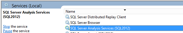 3) Right Click on SQL Server Analysis Services and Stop Service