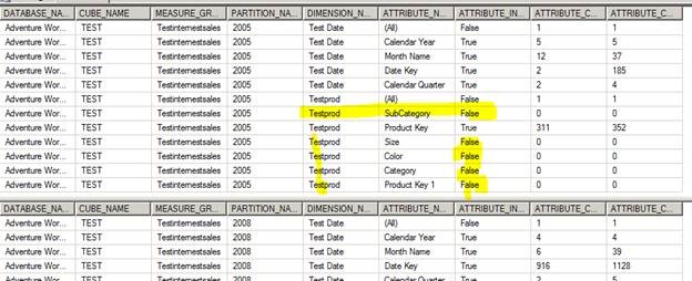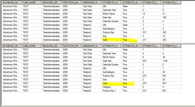 Fired same DMV and if you notice Attribute Index for Color is dropped for 2005 as well as 2008